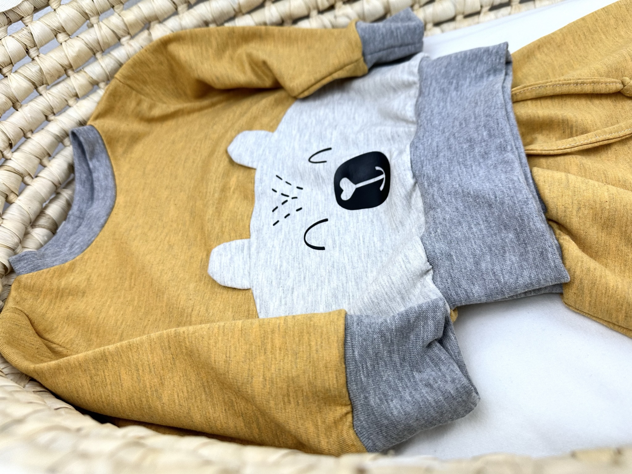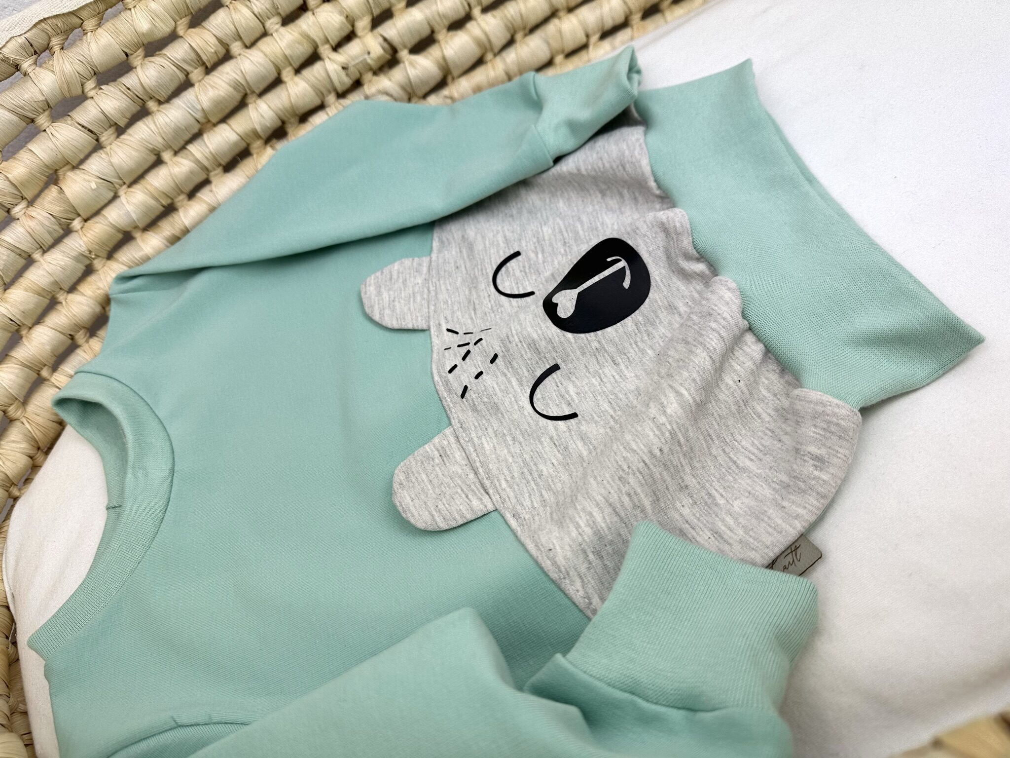 Ta otroški pulover je izdelan iz 100% bombažnega materiala, ki je zelo mehak in prijeten na dotik. Na sprednji strani puloverja je simpatičen motiv medvedka, ki bo pritegnil pozornost vašega otroka in mu pričaral nasmeh na obraz. Pulover ima okrogel ovratnik, dolge rokave in udoben kroj, ki omogoča gibanje in igro. Material in izdelava sta visoke kakovosti, zato bo pulover zdržal številna pranja in ostal lep ter mehak.